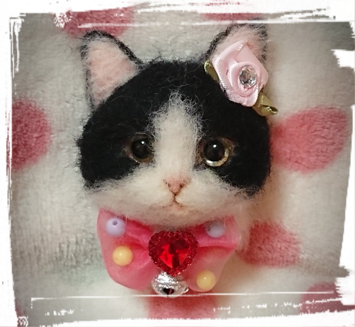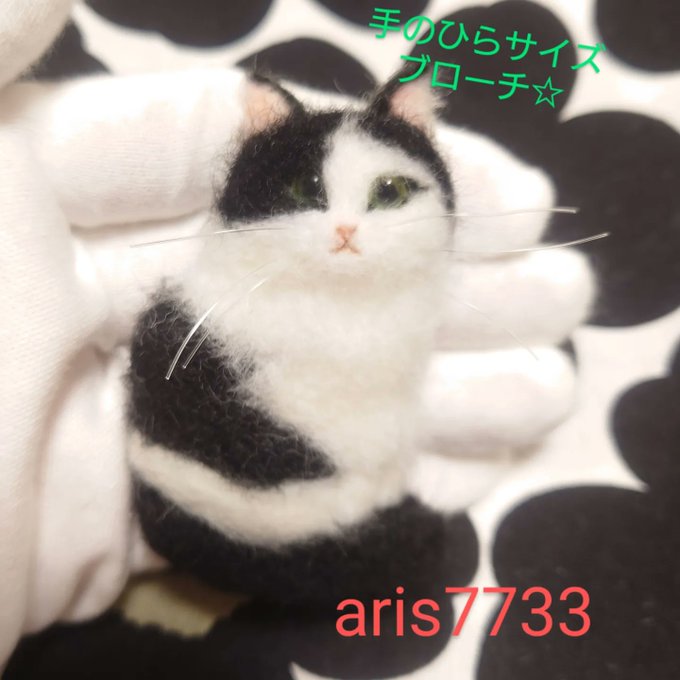 #ヤフオク! #羊毛フェルト 白 黒 ハチワレ猫ちゃんブローチ出品しました。 宜しくお願い致しますm(__)m
