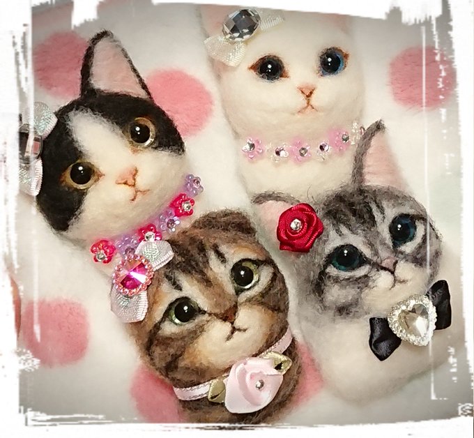 #羊毛フェルト #ブローチ #猫 これからヤフオク!に出品予定のブローチ、計4点です(^O^)