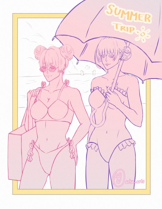 ☀️Summer Trip☀️ The girls look cute especially in swimsuits👀 #xsoleil #kotosmetic #Melocopic #doodle