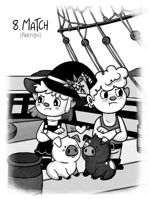 Día 8 - Match/Partido Encontrar a tu "perfect match" en un barco pirata rumbo a saber dónde, es bastante improbable, pero a pesar de que sus dueños no se llevan muy bien, estos dos cerditos parecen estar hechos el uno para el otro. #inktober2022 #Inktober #Drawtober2022
