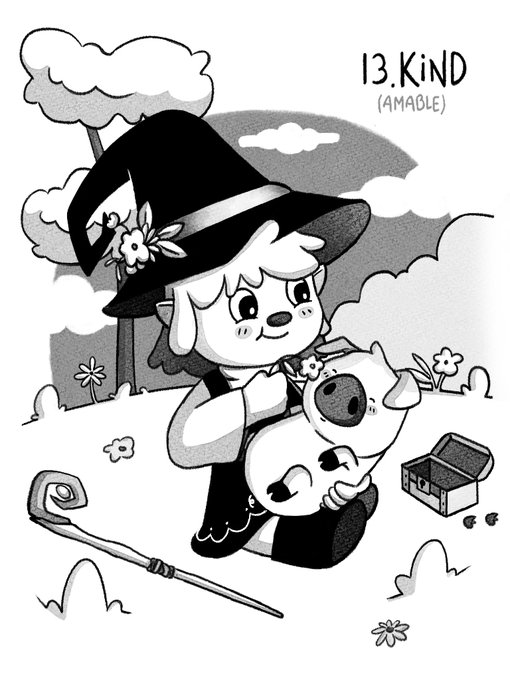 Día 13 - Kind/Amable En un día tan bonito y sin peligros a la vista, es hora de relajarse, y Lys decide aprovechar para animar a Gochi y jugar con las flores del valle, mientras tanto, un sospechoso amigo aprovecha la distracción... #Inktober #inktober2022 #Drawtober2022