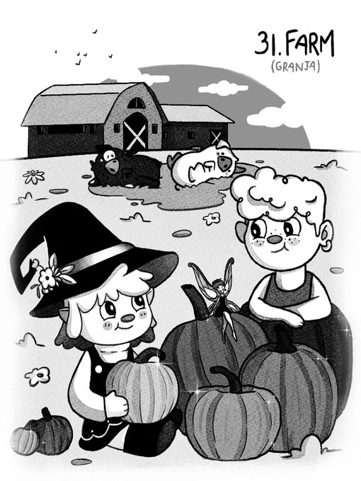 Día 31 - Farm/Granja Volver a casa parecía casi imposible, pero gracias al poder del hada, Lys y Gochi por fin pueden descansar, y aunque hayan perdido el cofre por el camino, han conseguido un tesoro aún mayor: una nueva amistad. #Inktober #inktober2022 #artwork