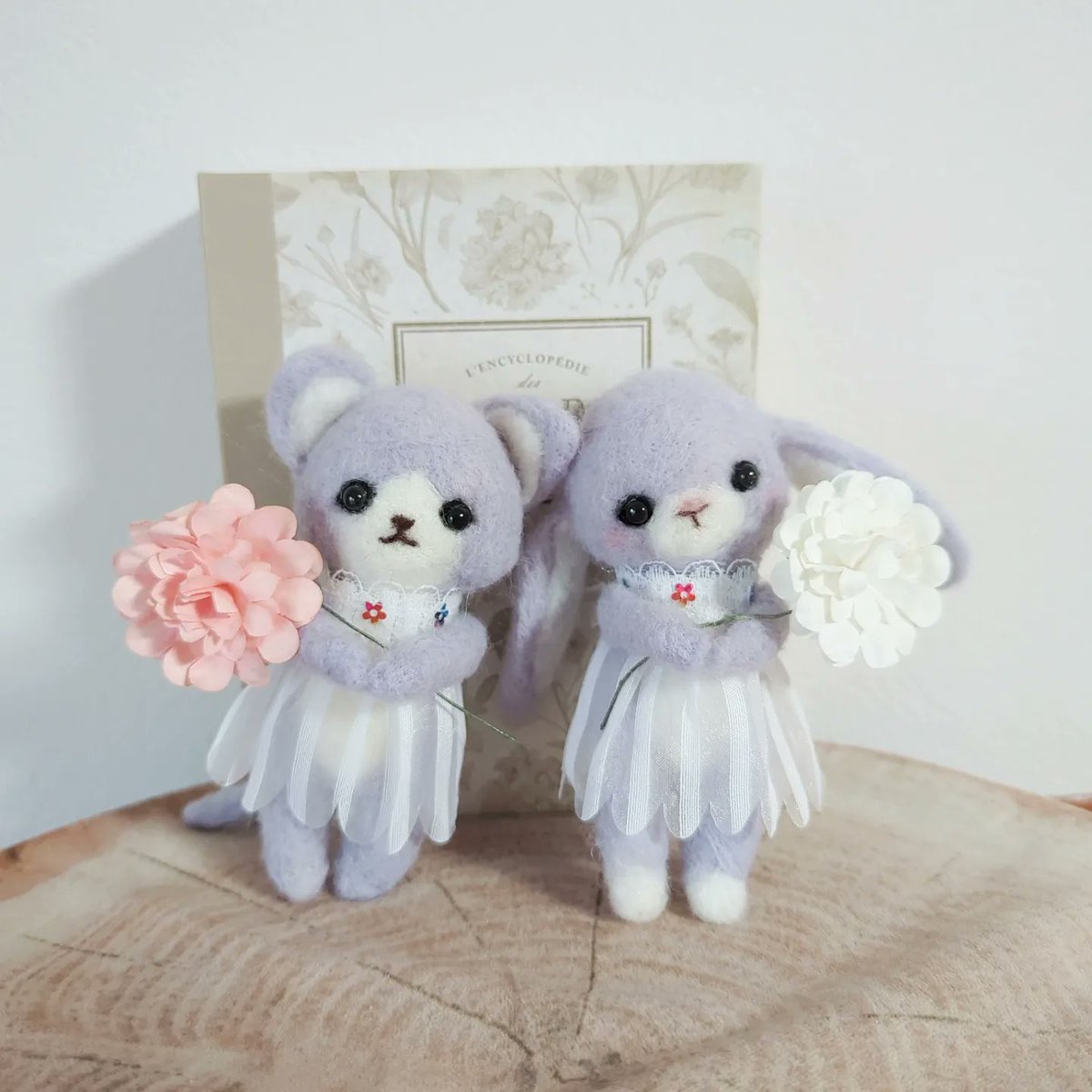 花をはこぶシリーズにうさぎちゃんを新しく作ってみました。小首を傾げたところがなんとなく可愛いポイントです! 今夜Minneとメルカリに登録する予定です〜🥰 #羊毛フェルト #ハンドメイド好きさんと繋がりたい