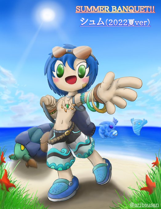 今日のシュム。今回は久し振りにうちの看板キャラ「シュム」を描いてみました。 シュムのイラストは今までに何度も描いてきましたが、今回も目指したのはシュムの歴代最高傑作! 今までとは異なりクリスタでの制作となっていて、草原や雲が手軽に用意できるのが良いですね…! #クリーチャーバンケット