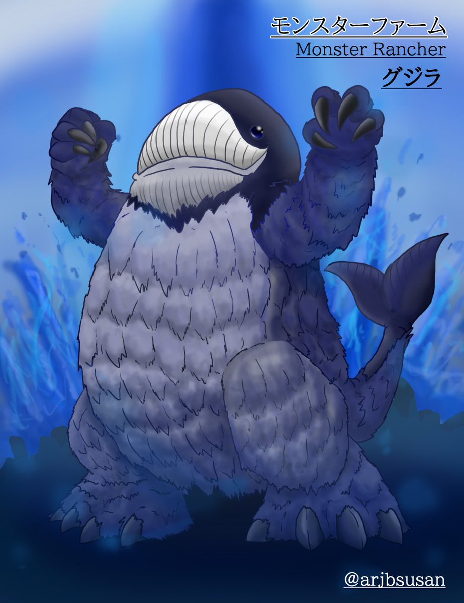 今日のモンスター。今回は時短でモンスターファームに登場する「グジラ」を描いてみました 。ウルトラ怪獣モンスターファームの発表記念として、いつもよりも怪獣らしく大きく見せております。 育成が出来るモンスターの中では最大級のサイズを誇り、もちろんパワーも一級品! #モンスターファーム