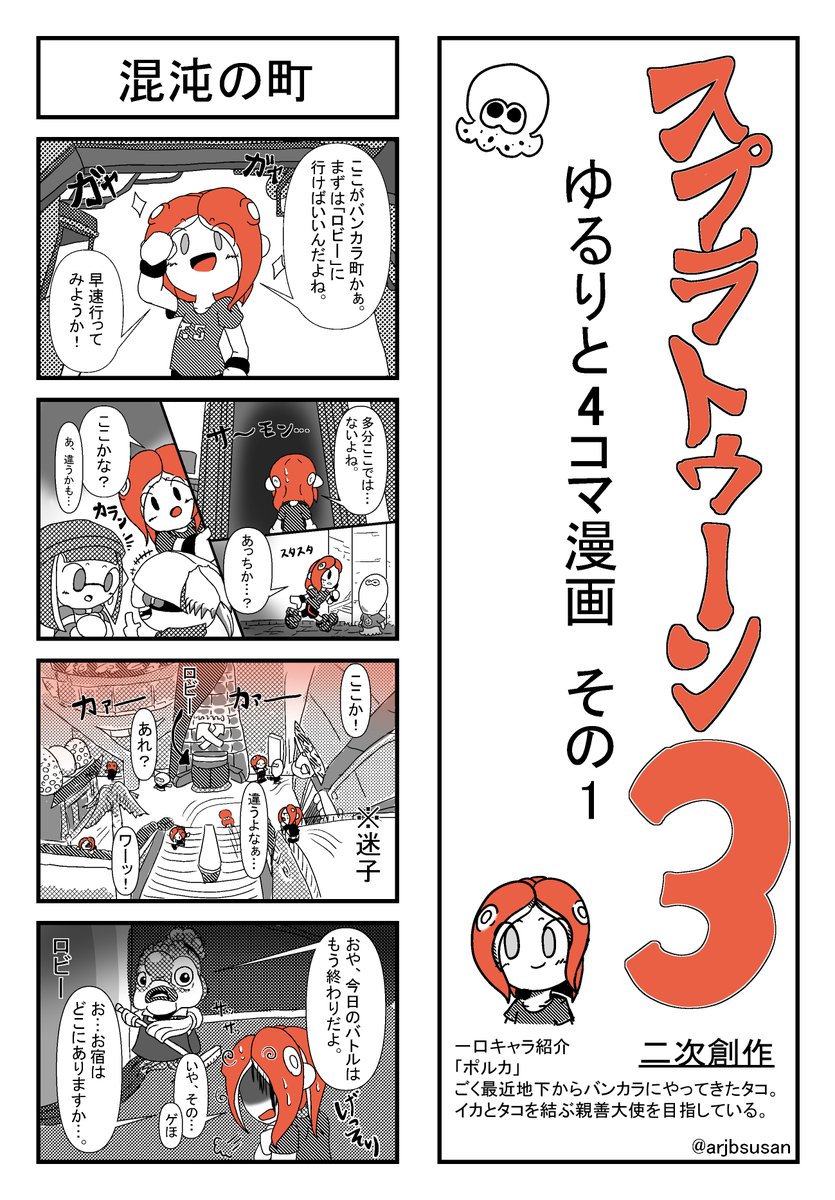 今日のスプラ。今回は私史上初!スプラトゥーン3で四コマ漫画を描いてみました。これからしばらくの間、一次創作と兼ねて少しずつ制作出来たらなと考えています。 それにしても今作の町は広大で面白いものが沢山目移りするので、つい迷子になってしまいそうですよね。 #Splatoon3 #スプラトゥーン3