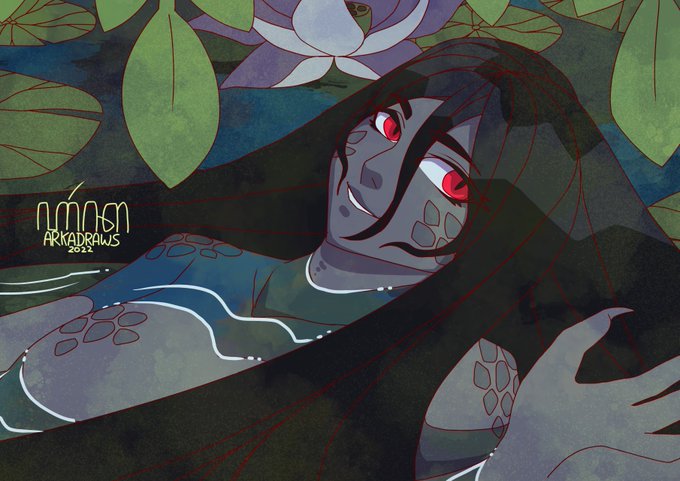 something lurks in the lotus pond behind our house #mermay #mermay2022 #artistsontwitter #ArtistOfindonesia #artidn #commissionsopen @CmsnArtist_Id @cmsn_ART