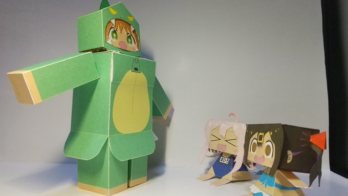 #おにまい #ペーパークラフト そういえば着ぐるみ、これもあったなとゆるキャラタイプでも作ってみました グラフィグのは髪を収めるため、かなり頭でっかちです😅