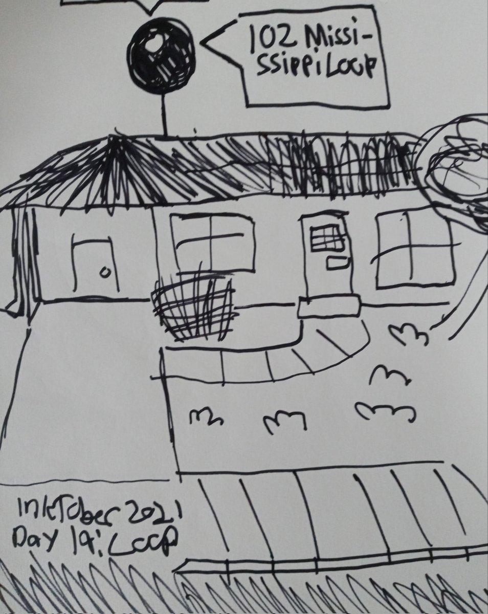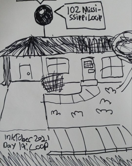 Inktober 2021: Day 19: Loop. Ok, let me explain this one, Loop represents my childhood street address in Arkansas, 102 Mississippi Loop and this is what the house use to look like, sort of. @inktober #Inktober #inktober2021 #inktober2021day19