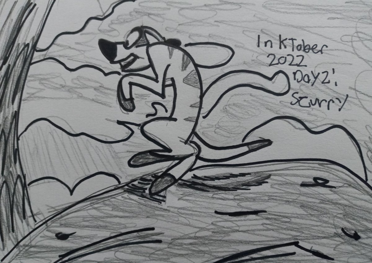 Inktober 2022 Day 2: Scurry. SCURRY! SNIFF! FLINCH! Note, a common meerkat, checking the perimeter for its natural predators @inktober #Inktober #inktober2022day2