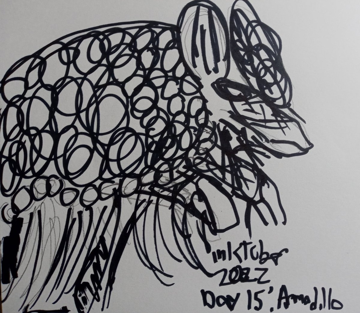 Inktober 2022 Day 15: Armadillo. An Armadillo, think something like turtle and an aardvark that can roll like rolie polie. #inktober2022 @inktober #Inktober #inktober2022day15