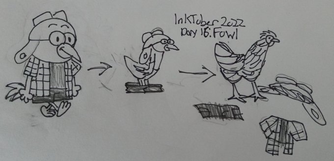 Inktober 2022 Day 16:Fowl. A Fowl is like one of those farm animal Birds famously known as a chicken or a rooster or a hen or chicks and many other wild birds. #inktober2022 @inktober #Inktober #inktober2022day16