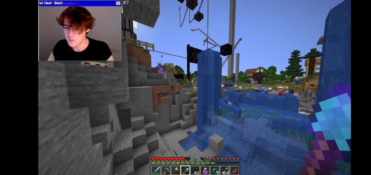 HI TWITTER IVE PAINTED ANOTHER MINECRAFT SCREENSHOT AND TOOK A LITTLE CREATIVE LIBERTY YKNOW HOW IT IS 》 #dreamsmp #wilbursootfanart #dreamsmpfanart #minecraft #pogtopia #lmanberg #landscapepainting 《 HOW DO TAGS WORK LOL