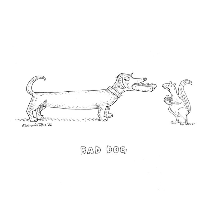 Hope that's not where your hot dog went. #colour_collective #cobweb #SpicyMustard #inktober #inktober2022 #baddog #kidlitart