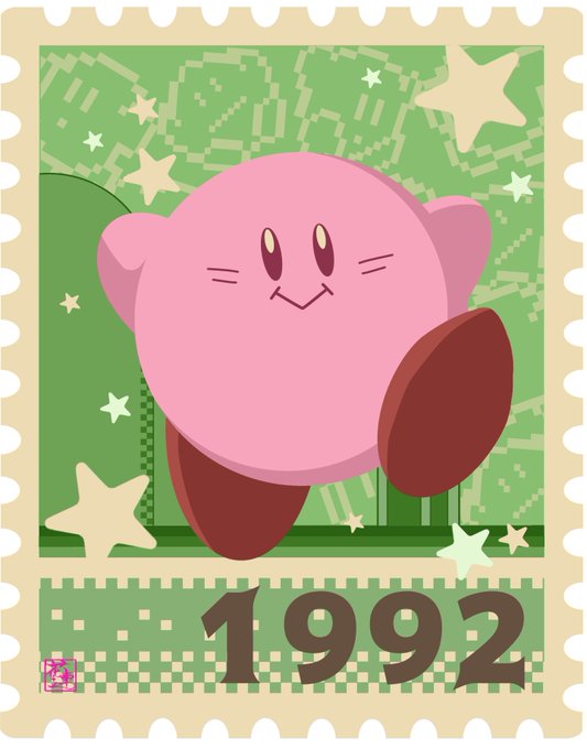 38 151 ゲームボーイ カービィのきらきらきっず 切手風 #カービィイラスト #カービィ #KirbyFanArt 23/01/25 19:00