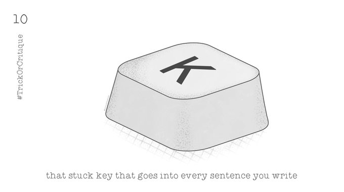 #10 That stuck key that goes into every sentence you write Day 10 of the #halloween countdown to the #TrickorCritique event! #kidlit #writingcommunity #inktober2021