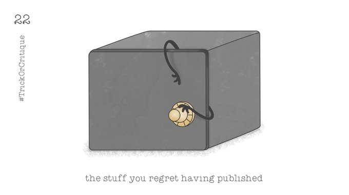 #22 The stuff you regret having published! Day 22 of the #halloween #kidlit horror stories countdown to the #TrickorCritique event! #writingcommunity #inktober2021