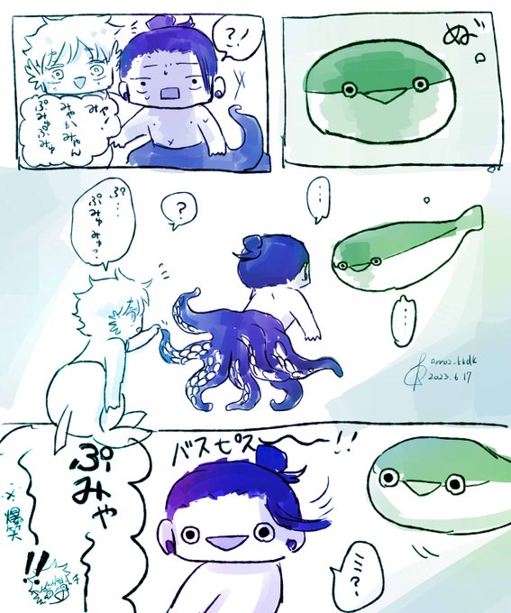 描きました✌(達成感)🧜♂️ちゃんのやらんぞモードは怒るというよりはおろおろして、寂しがって、ぎゅ……ってなったり、飼い主の友人を説得(のようなものを)して🐙くんから離そうとします。 #マシュマロを投げ合おう marshmallow-qa.com/messages/5bbf6…