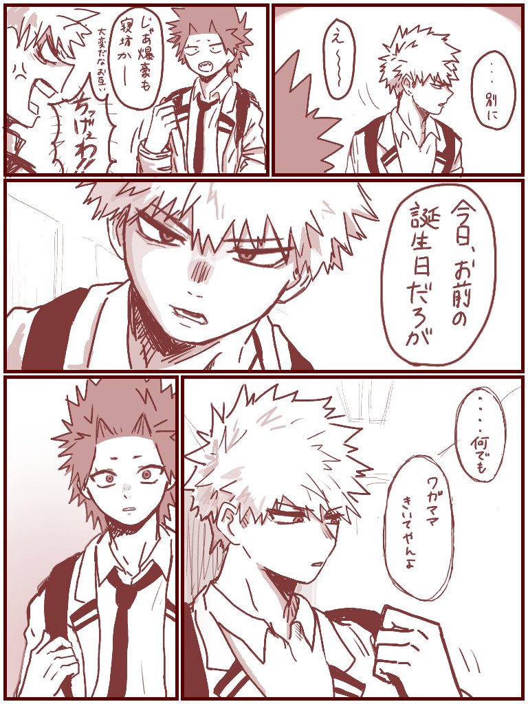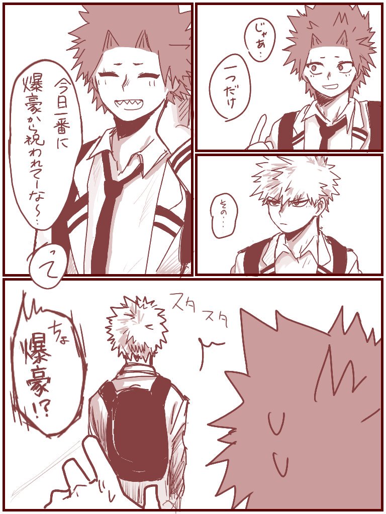 めちゃめちゃ遅刻しました!!が!どうしても切島の誕生日を祝いたいので…切島おたおめ漫画🎂(切爆)少し続きます↓ #切島鋭児郎生誕祭2019 #切島鋭児郎誕生祭2019