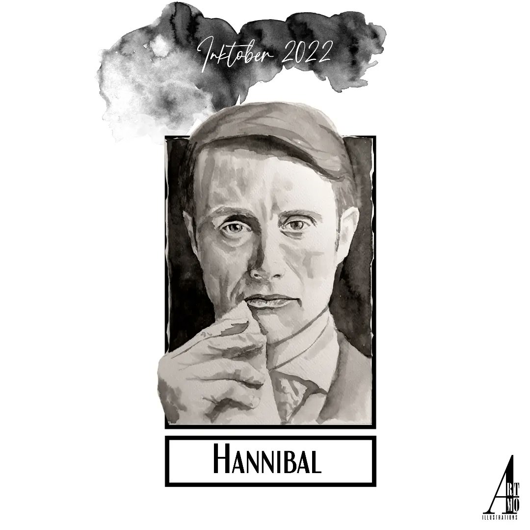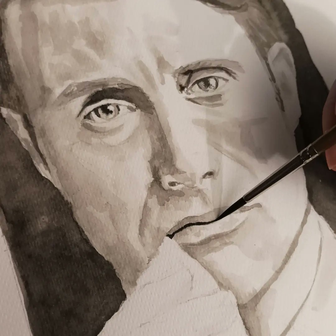 ROUND 3 1 Hannibal #hannibal #madsmikkelsen #ink #inktober #inktober2022 #sixfanart #sixfanarts #fanart #watercolor #art #artist #artamo