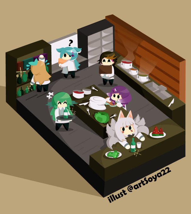 Nijisanji EN restaurant are open for business 🍷🍜✨ #PomuPaint #YaminoArt #pendorART #DrawKosaka #Artsuki #NIJISANJI_EN #Finanart