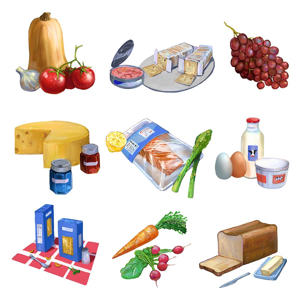 I got to do this set of 9 spot illos for @Sojourners May 2022 Issue, for an article about food rescue by @oliviardiaz AD: (the amazing!!)Candace Sanders Read here->>sojo.net/magazine/may-2… #EditorialIllustration #illustration