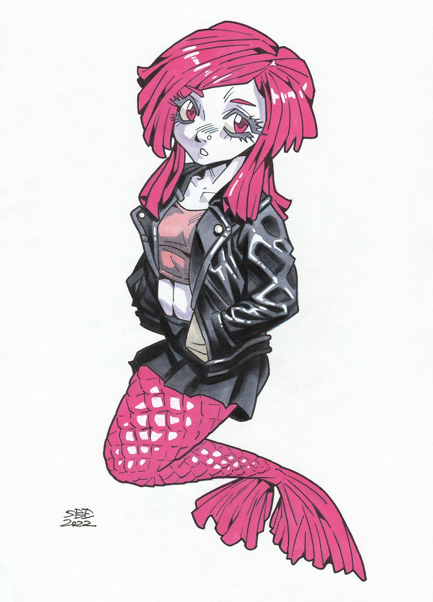 Done! For once, one I like. Prompt was "emotional" (in this case simply emo) and I have another idea for it I might actually finish, it's gonna be a good one 😌😉 #mermay2022 #copic