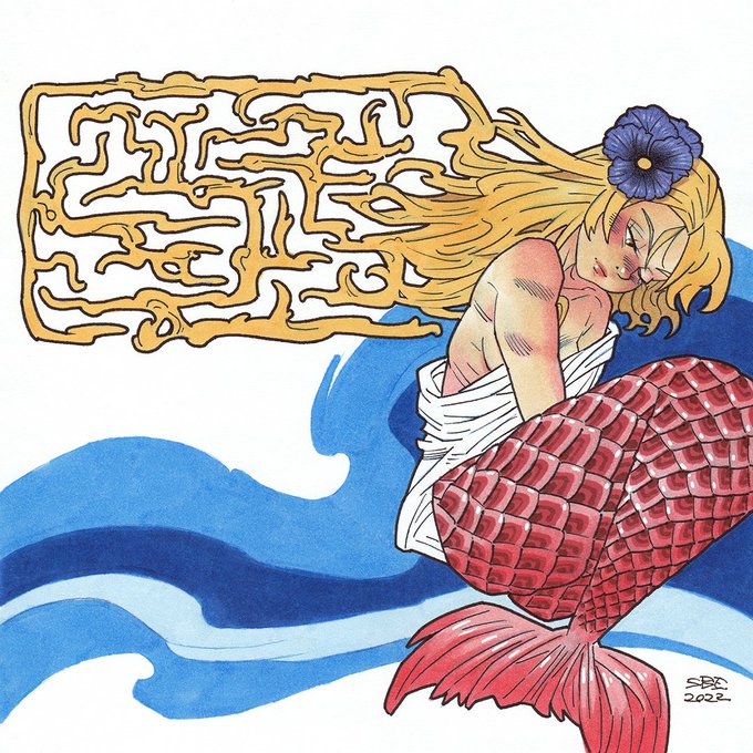 Yesterday's prompt "Mermaze" enjoying being a dollar store Mucha for a day. All Mermay originals are on sale for 60$ not including shipping. #mermay2022 #artnoveau