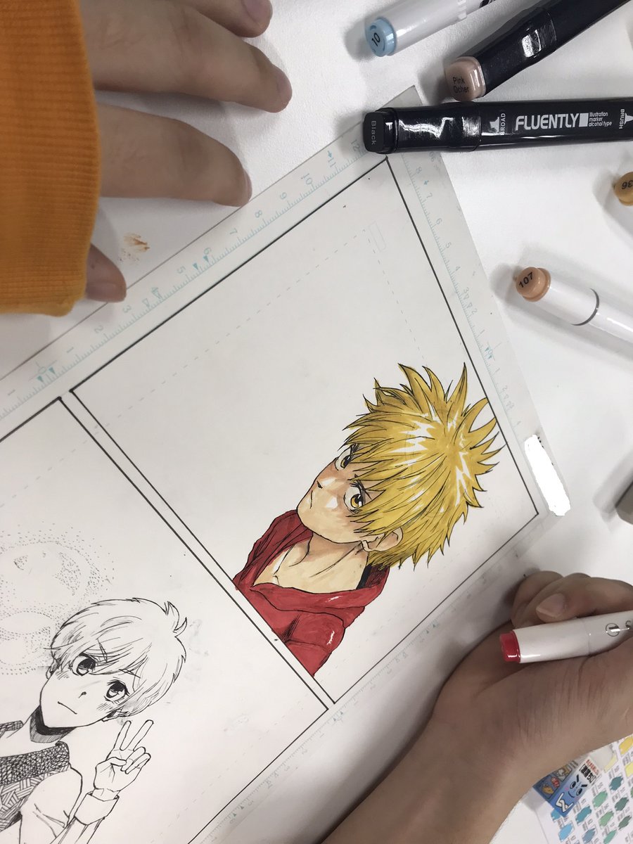 1 1 #マンガクリエイト科 担当の志村です✒ 今回はプロの漫画家たちも愛用する #コピック を使った #カラー着色 の授業を行いました! 色のサンプルを見ながら、自分のイメージしたコピックを楽し気に選んでいました♪ 現在勉強中の #色彩検定 の知識もフル活用できましたね😆✨ #授業紹介 #漫画家 22/11/08 18:46