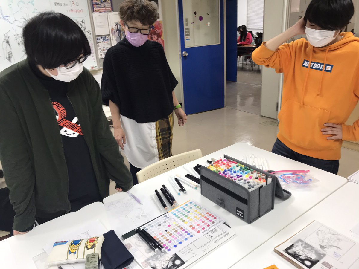 #マンガクリエイト科 担当の志村です✒ 今回はプロの漫画家たちも愛用する #コピック を使った #カラー着色 の授業を行いました! 色のサンプルを見ながら、自分のイメージしたコピックを楽し気に選んでいました♪ 現在勉強中の #色彩検定 の知識もフル活用できましたね😆✨ #授業紹介 #漫画家