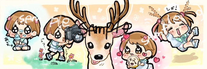 1 4 #はとたのご依頼 ヘッダー用イラスト‼️ シカ旅行満喫してるイメージをポップに描きました🫶 23/06/28 10:20