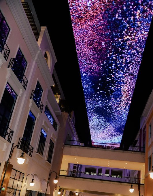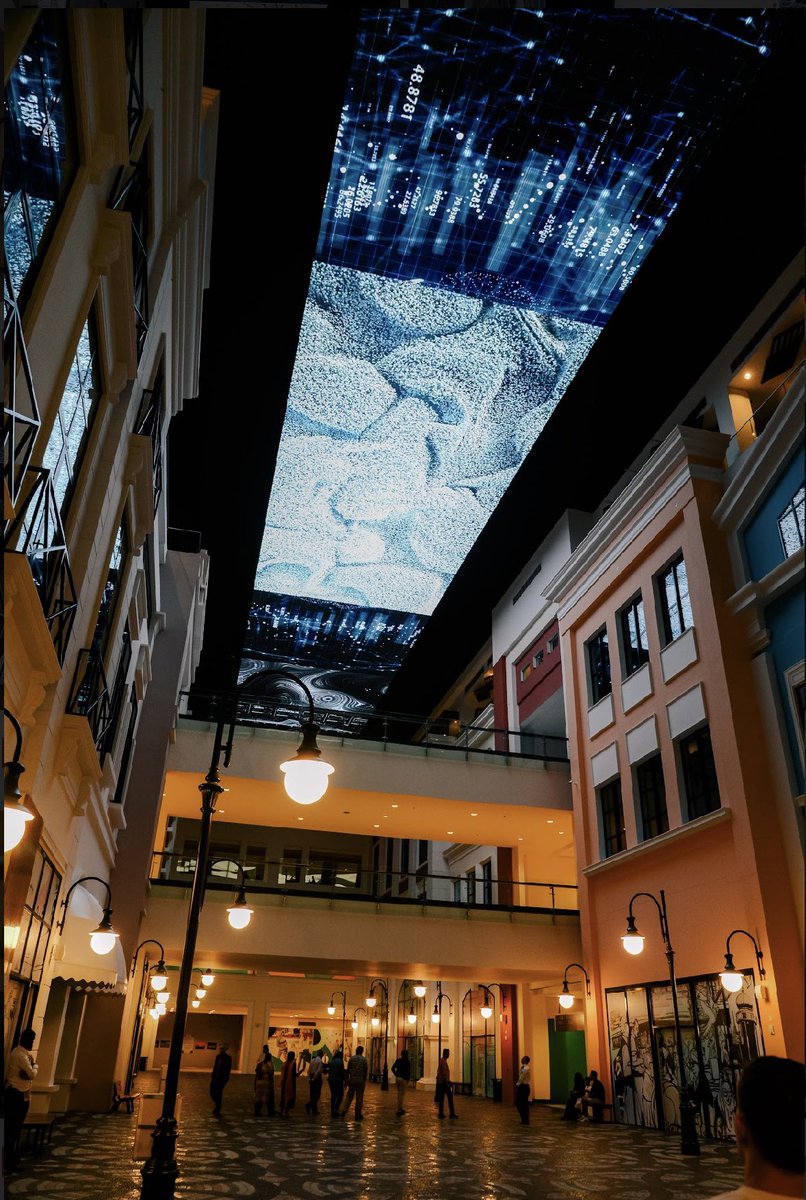 Monumental artwork by @PaulMarlier is dancing on the ceiling of the MALL OF DILMUNIA #Bahrain 💜🪐 . . . #digitalart#DigitalArtist#dance#generativeart @moi_bahrain Thank you so much @IFParis @AfBahrain and French Embassy.