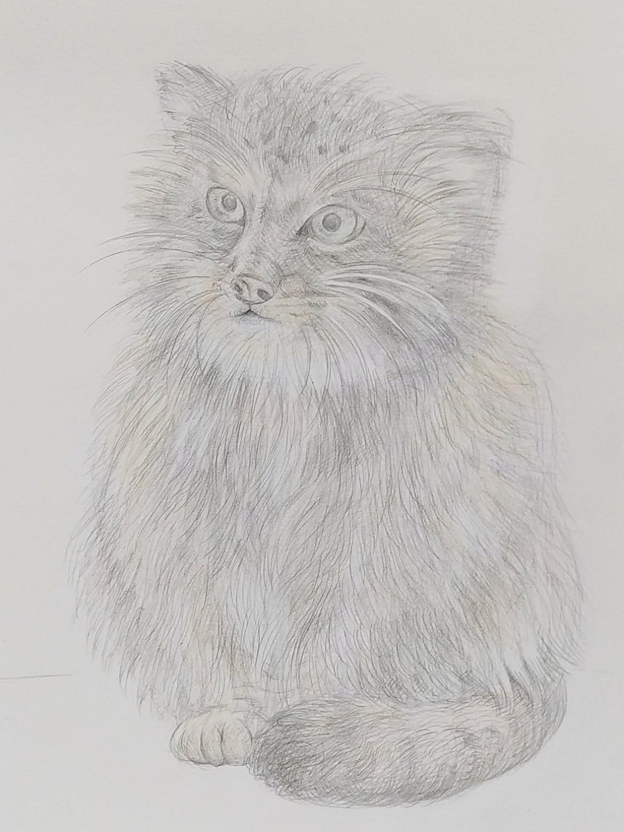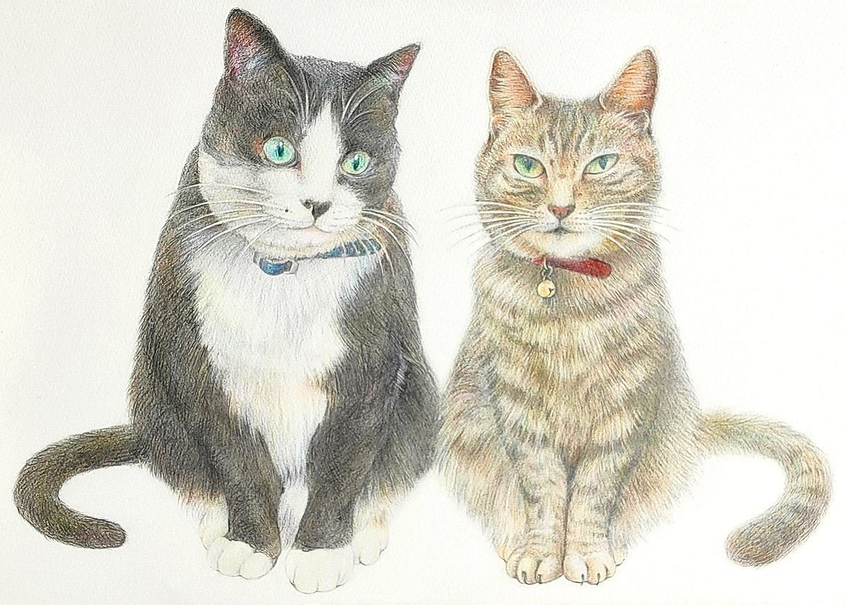 にゃんにゃんの日は過ぎてしまいましたが、、完成した猫ちゃんのデッサンです!!🐈 シャーペンと色鉛筆使用です。 モデルさんがとてもかわいくて、楽しく描くことができました✨ご縁に感謝です☘️ #猫のいる暮らし #猫好きさんと繋がりたい #色鉛筆画 #みんなで楽しむTwitter展覧会