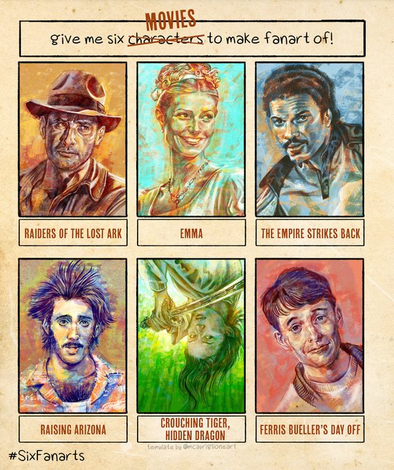 Finished my #SixFanarts collection. It was a blast to play hooky to do these, and I'll try to do more! #SixFanartsChallenge @kyletwebster @starwars @JaneAustenLIVES @Lucasfilm_Ltd @LucasfilmMag @ferrisbueller