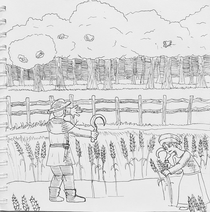 Inktober 2021 day 22 “peasant” The peasants who work near the Twilight Forest look into the woods with curiosity and dread. #medievalfantasy #drawing #inktober2021 #inktober