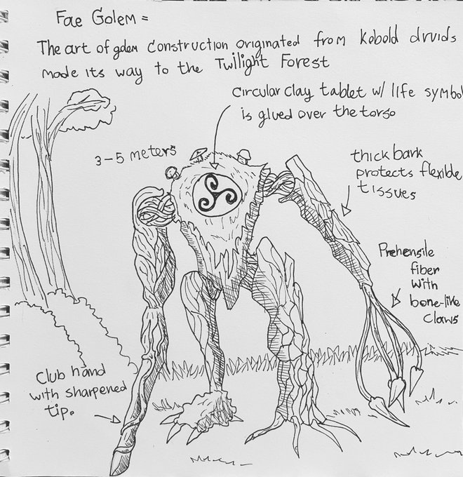 Inktober 2021 day 24 Fae Golem is a prized sentinel monster due to its resilience and strength. #inktober2021 #inktober #fantasycreature #creaturedesign #fantasy #fantasyart #drawing