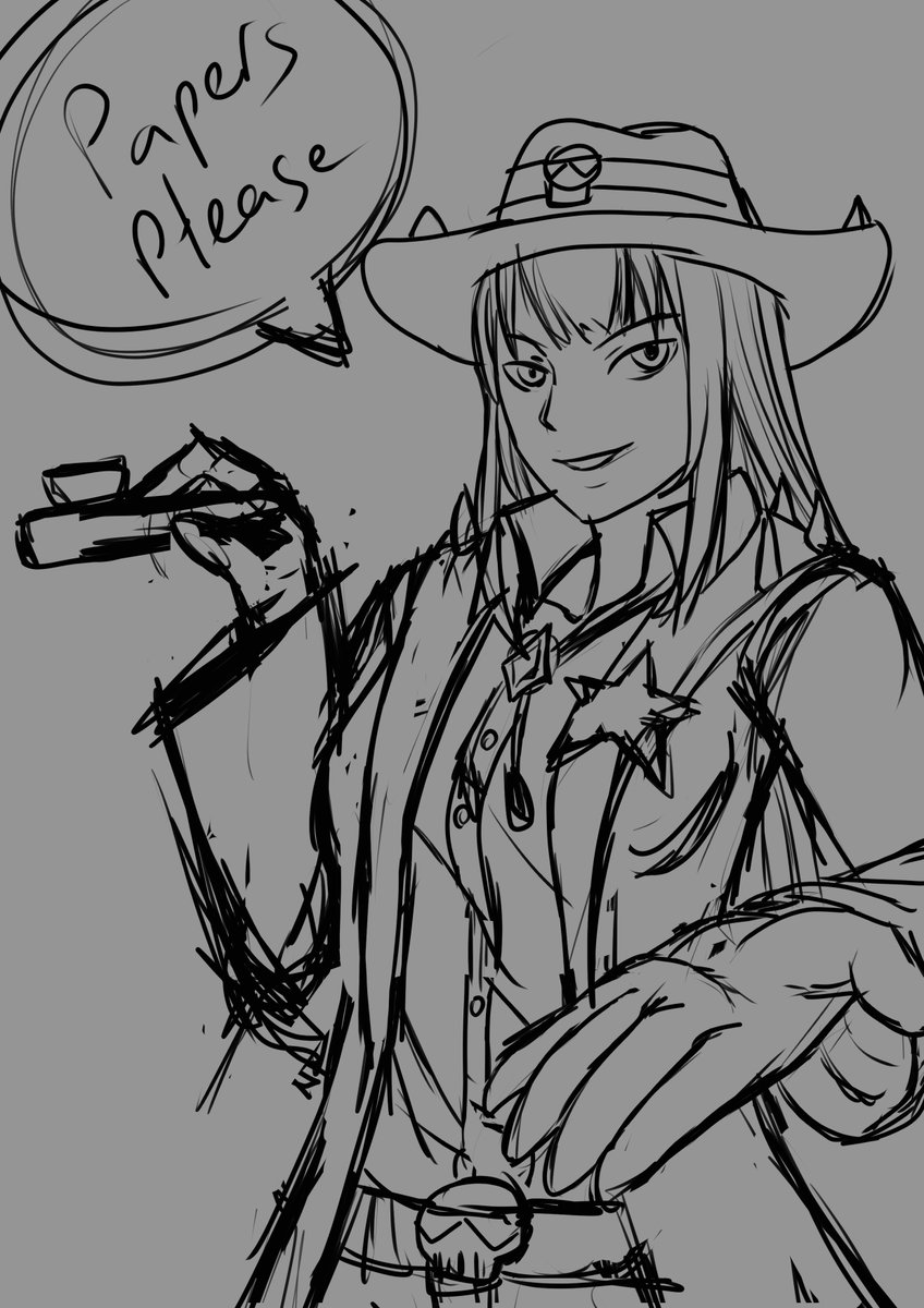 Sheriff Calliope At you F**king service. #callillust #Deadbeats #papersplease #illustration #CLIPSTUDIOPAINT