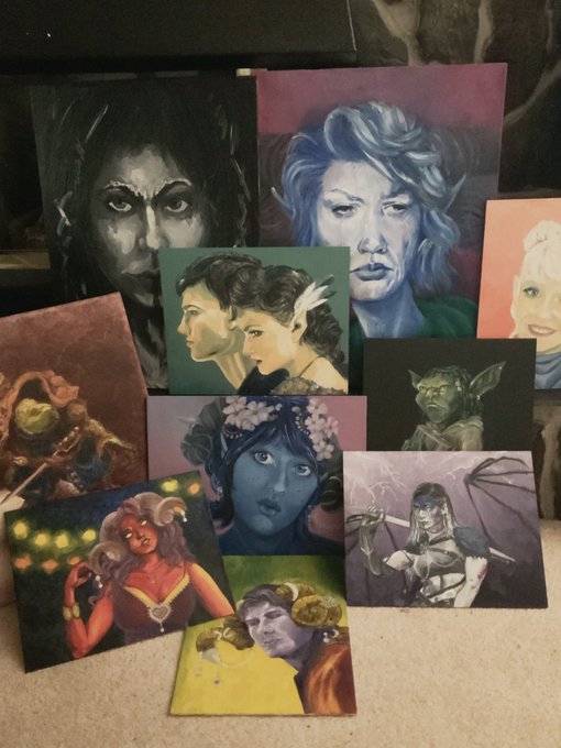 Trying to sort my studio and I found a pile of my fanart paintings. 💙 I’m artbybaha on insta. These are for sale to make room for new work. #criticalrolefanart #Criticalrole #painting