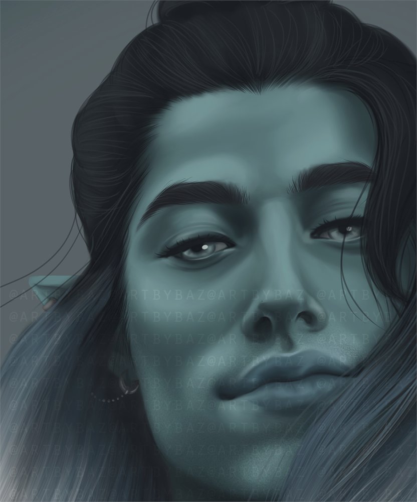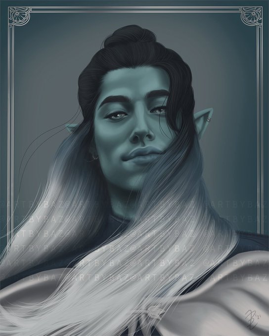 Hello, #PortfolioDay ! I'm Baz, a queer nonbinary artist who specializes in digital portraiture. I love bringing fantasy characters to life. Here are some of my all-time favourite pieces!