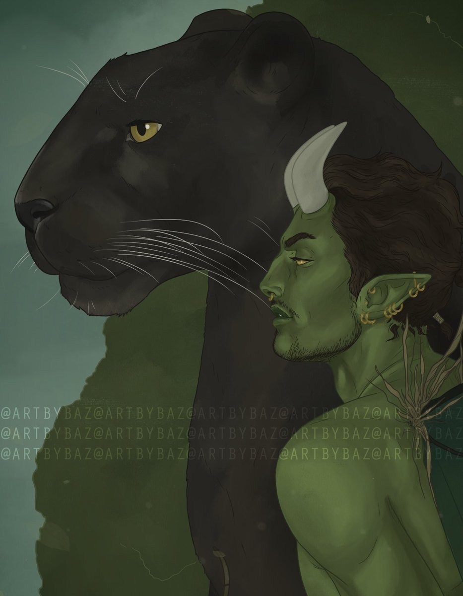 🦋 New Piece🦋 Nyv and his panther are on watch duty looking judgemental as heck...ft. Nyv's lil butt crack 😌🍑 #DnDArt #DnDArtist #ArtistsOnTwitter