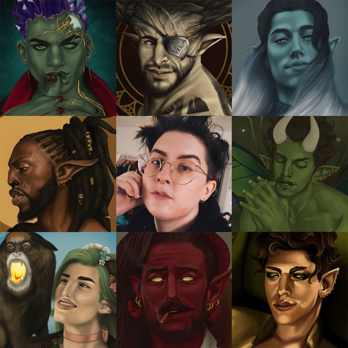 Hi #PortfolioDay ! I'm Baz. I'm a queer, nonbinary artist who loves doing fantasy portraiture. Here are some favourites from 2021 in a few different styles I enjoy!