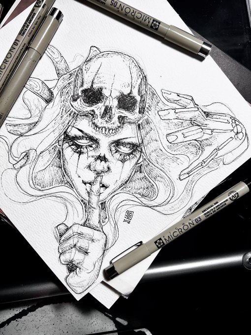 lowkey this challenge has been a push to finish neglected pieces, this one is for day 24 of #monstober “night crawlers” 🖤🦇 #art #artistsontwitter #inktober
