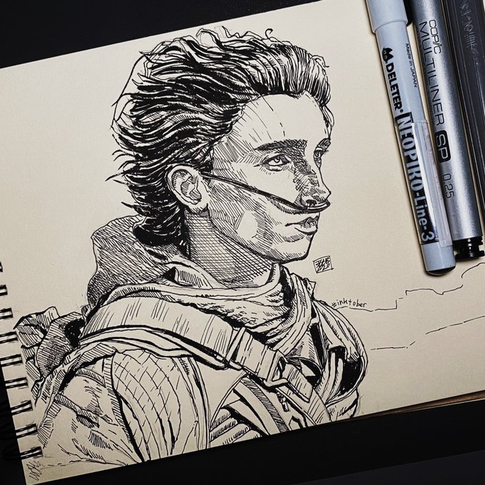 Inktober 013 Timothée Chalamet in Dune #inktober2020 #inktober13 #inktober013 #inktoberday13 #dune #pen #ink #illustration #art @RealChalamet #fanart @dunemovie