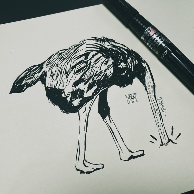 Inktober 26 The Ostrich Hides. #inktober2020 #inktober26 #inktober #inktober026 #inktoberday26 #inktober2020hide #art #portrait #illustration #pen #ink #hide