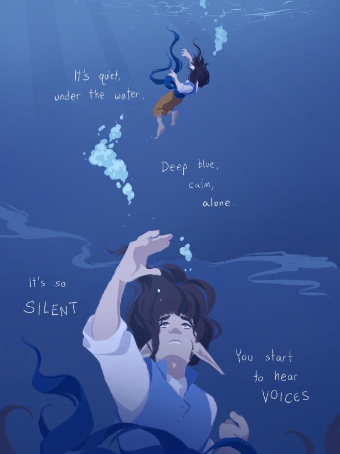Fathomless 🌊 Messy stuff for #sketchbooksunday featuring Nimae, my high elf Fathomless Warlock! He's very sad and soggy. #characterdesign #dndart #dnd