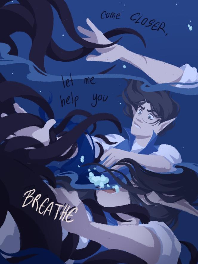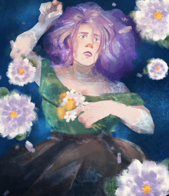 Ophelia 🪷💐 Fynn for @/beetlebees on Instagram! Fynn was a great character, and I knew immediately I wanted to do something for her with water and flowers #illustration #digitalart #dndart #digitalpainting