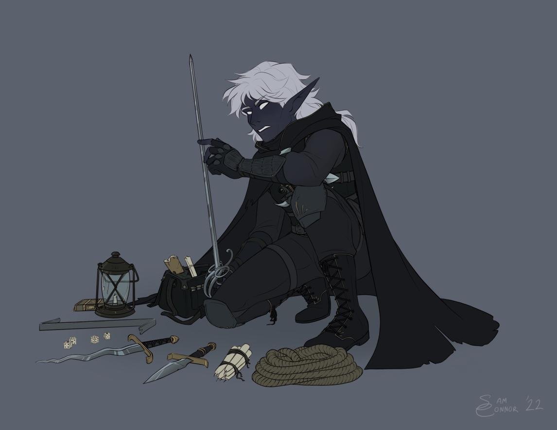 Taking Inventory ⚔️ Commission for @widdershinning of their DnD character Veldrin, complete with his inventory~ #dndart #illustration