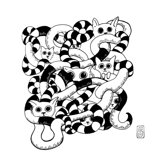 Inktober 4, Knots. Originally it started as just a cat and one knot, then it turned into this. 😅 #inktober #inktober2021 #sketch #drawing #illustration