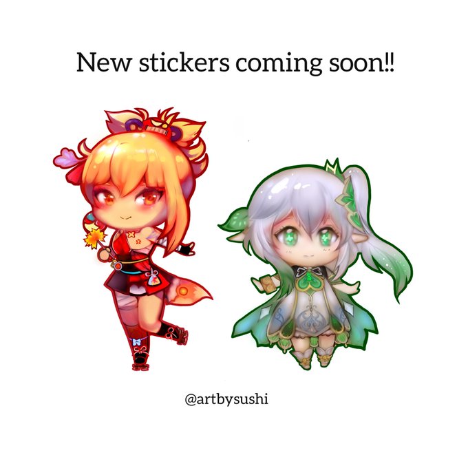 New stickers coming to my shop soon! 🔥🔥🔥🔥 #yoimiya and #nahida !!! #GenshinImpact #genshinleaks #genshinimpactfanart #GenshinImpactCC