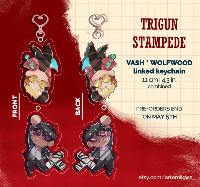 This is what I was working on!!! #Vashwood linked keychains for you to eat!! (please don't) Link below <3